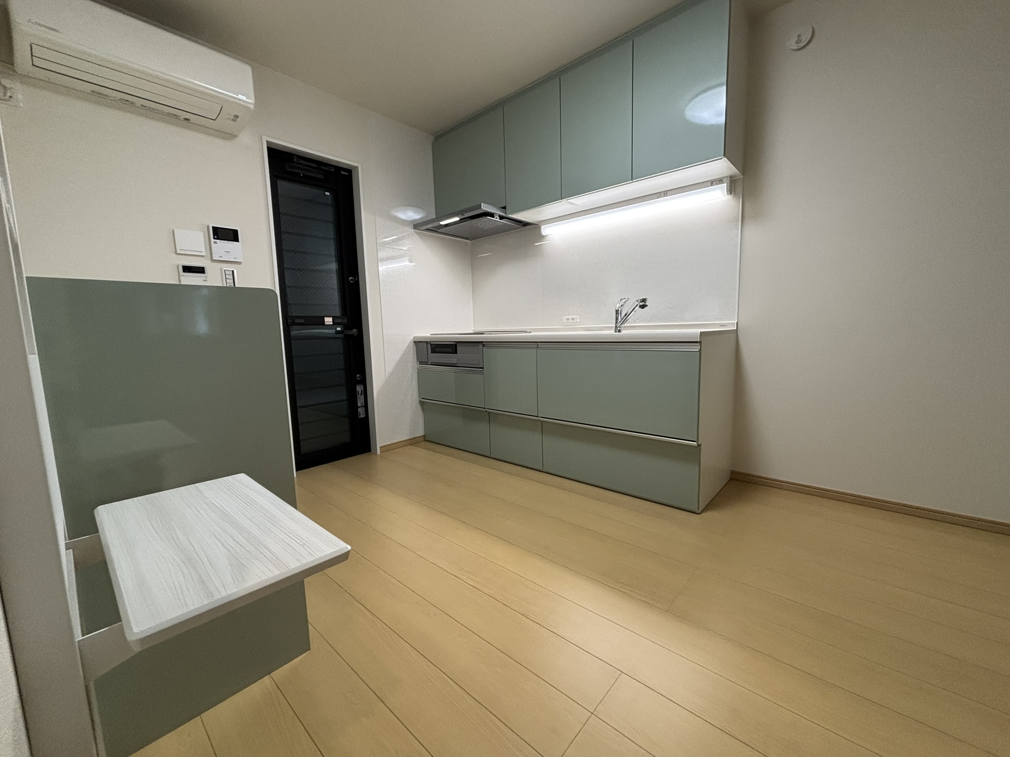 木の素材感と 調和するグリーンの内装